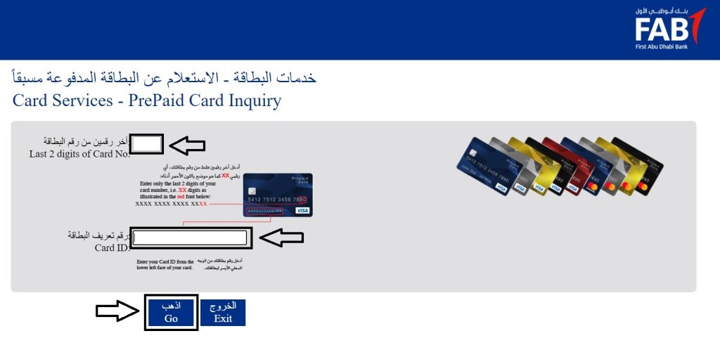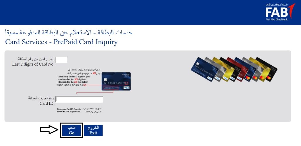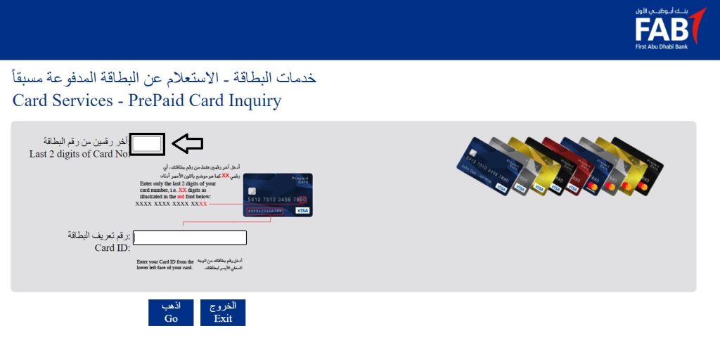 FAB Balance Check Salary Online in Sharjah through FAB Banking by visiting First Abu Dhabi Bank’s official website. To log in, enter the last two digits of your 16-digit Card Number and Card ID Number located in the lower left corner. You can view your salary by clicking on the “Go” button.